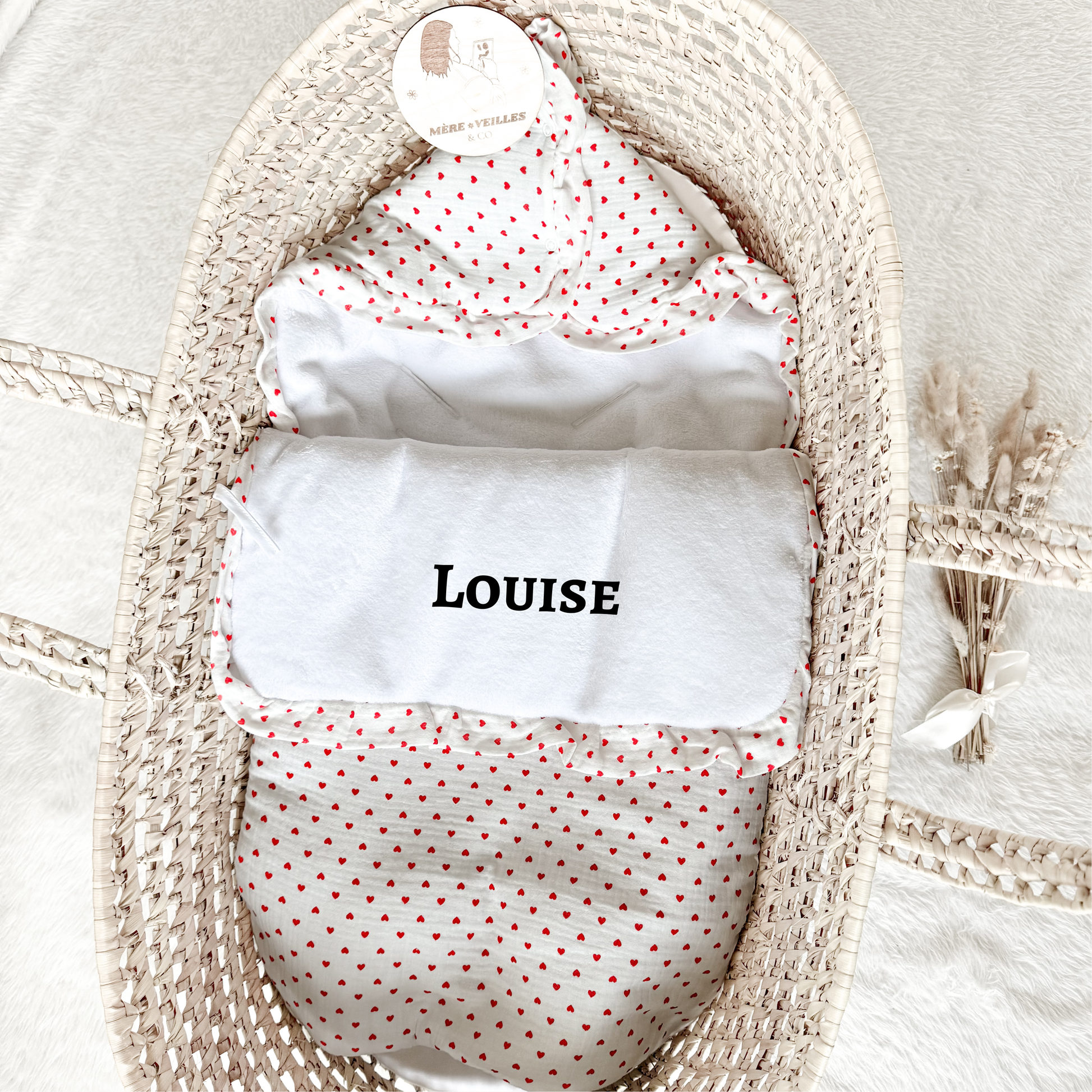 Offrez un cocon de tendresse à votre bébé avec ce ravissant nid d’ange tout doux, orné d’un imprimé à petits cœurs rouges pour une touche pleine de charme et de douceur. Conçu pour envelopper votre nouveau-né dès la naissance, il garantit confort et chaleur lors des premières sorties ou moments de repos.